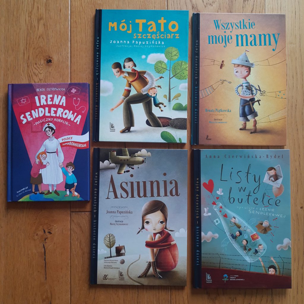 II wojnę światową omówiłyśmy czytając kilka książek z serii „Wojny dorosłych, historie dzieci”, m.in. o Irenie Sendlerowej. A czasy PRL to, oprócz Ale historia! również Bzik i Makówka „Maliny zza żelaznej kurtyny” – fajny przyczynek do rozmowy o PRLu (bo tu akurat rodzice pamiętają własne dzieciństwo) oraz książki z serii „Stare radio”
